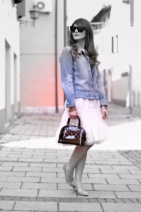 Adoro le gonne in tulle, e ancora incredibilmente non ne ho una! Questa di Dixie (dalle mie parti in Toscana ci son diversi negozi monomarca Dixie) è bellissima, abbinata col giubbino di jeans e la mini bag è perfetta