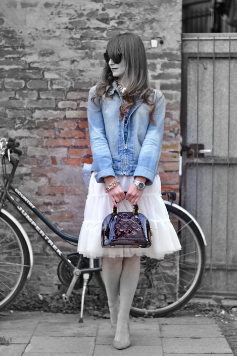 | Skirt: Dixie; jacket: Benetton (old); tee: Dress Code; shoes: SKA; bag: Louis Vuitton Alma bb; sunnies: Cèline Audrey; bracelet: BYS |