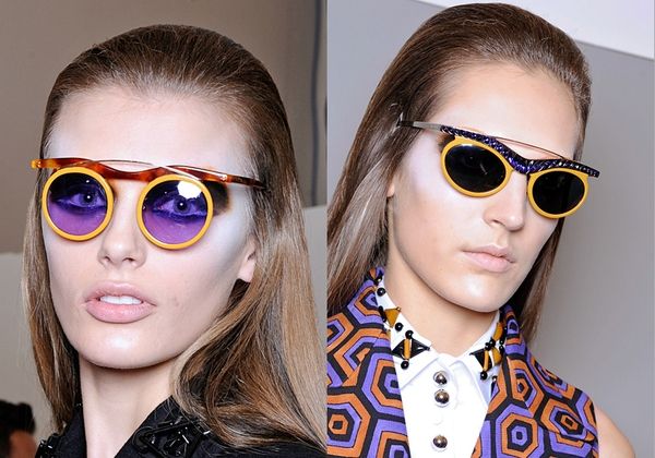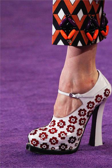 The new Prada collection … What do you think about? Very challenging, a bit ‘risky, but there are definitely elements of class. As a good teacher, here is my report card: let me tell you what I think to promote and what to reject … Geometries are beautiful, halfway between the sixties, seventies and the wallpaper. I like the fact that it is very fashionable purple combined with orange. The return of the gems anywhere. Interesting at the hem of the pants, out in the legs and on tops. Flower power, what about? The flowers on the socks are really nice. No at the flowers on the shoes and especially on bags. Bored quickly. Masculine look: I really like the male line in the classic-looking suits and austere in alternative colors, combined with doctor bags. I can not digest instead of the classic lace-ups, let alone those flowery! Sandals with wool socks: why not? The important thing is to make color block! Sunglasses: only if they remember the pseudo–classical forms. I like the tortoise pattern. No if they are round like John Lennon’s, with colored lenses. They’re really good a few. What do you think? (as always sorry for my bad english…)