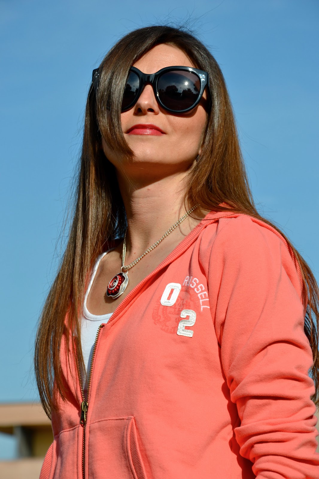 | Finalmente è sabato! Non appena arriverò a casa dal lavoro mi vestirò così, ho voglia di relax totale e un po’ di sport all’aperto. Spero tanto che il sole faccia uno sforzo ed esca, perchè ho in programma per questo week end lunghi giri in bicicletta e qualche camminata. Dopo tutto il lavoro di questa pesante settimana ho bisogno di rigenerarmi lontano dalla città e dal suo traffico e solo lo sport mi può aiutare. Eh si, sto tornando sportiva quasi come una volta, evviva! Vi piace la mia felpa Russell Athletic? Ormai sapete che amo tantissimo questo brand, i suoi capi sono super confortevoli e allo stesso tempo alla moda. E poi questo colore super vitaminico mi mette tanta allegria! Finally, it’s Saturday! As soon as I get home from work I dress well, I want to total relaxation and a bit ‘of outdoor sports. I hope that the sun makes an effort and get out, because I have planned for this weekend long bike rides and some walking. After all the heavy work of this week I need to regenerate away from the city and its traffic and only sport can help me. Oh yes, I’m coming sporty almost like once! Do you like my sweatshirt by Russell Athletic? By now you know that I really love this brand, its clothes are super comfortable and fashionable at the same time. And then this color super vitaminic makes me so much joy!