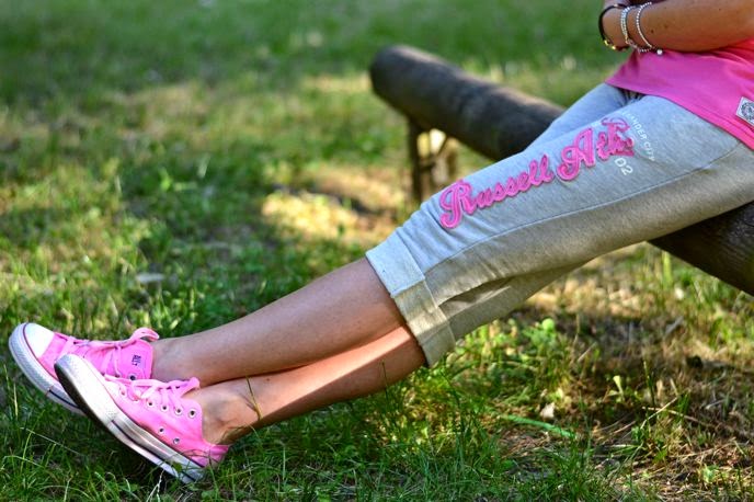 Un sabato tranquillo e rilassante in versione sportiva dopo una settimana molto pesante ci voleva proprio. Questa volta abbiamo sperimentato il percorso – vita, ma sinceramente non fa per me… Molto meglio un bel giro in bicicletta, l’aria fresca è molto piacevole sulla pelle. Pedalerei per ore! La comodità di questo completo Russell Athletic è impareggiabile e i colori non potevano essere più adatti a me. Infatti non è un caso se già avevo le Converse dello stesso colore della maglia, erano anni che aspettavano un completo così per viaggiare insieme, ahahhaa! One Saturdayincalm and relaxingsport versionafter a very busy week. A nice walk or a bike ride, fresh air is very pleasanton the skin. I love my Russell Athletic total look, very comfortable and colors could notbemore suitedto me.It‘s nota coincidence thatI already hadtheConverseof the samecolor of the tee, I love so much bright pink…