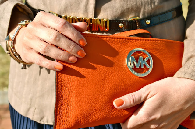 Ciao a tutti, il post di oggi non doveva essere questo, ma la macchina fotografica si è rifiutata di scaricare le foto destinate al post odierno (boh, chissà perchè???), così ho riesumato alcuni scatti di un outfit di maggio che non vi avevo ancora mostrato. Un outfit da lavoro in una giornata ventosa. Il mio pezzo preferito è la clutch di Michael Kors, è di un arancio vivace che mi mette tanta allegria. Mi piace molto abbinarlo ai toni del blu e del viola. Spero che il risultato vi piaccia. Buon week end e buone vacanze a tutti quelli che sono in partenza per le ferie! Hello everyone, today’s post was not supposed to be this, but the camera refused to download photos intended for today’s post ( I wonder why?), So I dug up some shots of an outfit in May that I had never shown. dressed for work on a windy day. My favorite piece is the clutch by Michael Kors, is a vibrant orange that makes me so much joy. I really like to combine it with shades of blue and purple. Hope you like it! Happy weekend and happy holidays to all those who are leaving for the holidays!