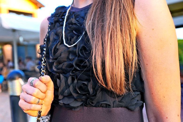Il bello del vestirsi è seguire il proprio gusto o semplicemente un mood che ci fa sentire a proprio agio in una determinata circostanza. Non ci sono regole e non ci devono essere. L’importante è la sobrietà, soprattutto in certe occasioni. Parlando di matrimoni, ho sentito molte opinioni discordanti: chi bandisce il nero, chi pensa che vestirsi di bianco sia una mancanza di rispetto nei confronti della sposa, chi preferisce toni pastello e chi ama i toni saturi del rosso, verde brillante o blu cobalto. Io non amo i colori accesi, tantomeno le fantasie improbabili, che spesso si vedono ai matrimoni e difficilmente risultano fini. Io dico si al bianco, al rosa cipria e anche al nero ma resto aperta a nuove soluzioni. A me il nero piace sempre, lo trovo sempre elegante e ho scelto di indossarlo per questa occasione. Perchè no? Il tocco di colore che spezza gli schemi è dato dalle Rockstud firmate Valentino. Queste foto sono state scattate dal fotografo ufficiale della cerimonia, con la sua Canon (non so il modello) con la complicità di un bellissimo tramonto. Ditemi cosa ne pensate perchè io trovo che i colori siano un po’ troppo saturi e poco naturali. La mia Nikon purtroppo è fuori uso, temo di doverne comprare una nuova, uff! ( a proposito, Canon o Nikon? Dibattito sempre aperto…)  The beauty of fashion and dressing  is to follow your own taste or just a mood that makes us feel at ease in a given circumstance. There are no rules and there should not be. The important thing is moderation, especially on certain occasions. Speaking of weddings, I have heard many conflicting opinions: who banishes black, those who think that wearing white is a lack of respect for the bride, who prefers pastels and those who love the saturated tones of red, bright green or cobalt blue. I don’t love the bright colors and prints for wedding days. I say yes to white, powder pink and even black. I  like always black, I find it elegant in all occasions. Why not? The touch of color that breaks the patterns is given by Valentino Rockstud heels. These photos were taken by the official photographer of the ceremony, with his Canon (do not know the model) with the help of a beautiful sunset. Tell me what you think because I find that the colors are a bit too saturated and unnatural. My Nikon unfortunately is out of order, I’m afraid of having to buy a new one. (By the way, Canon or Nikon? Debate still open )
