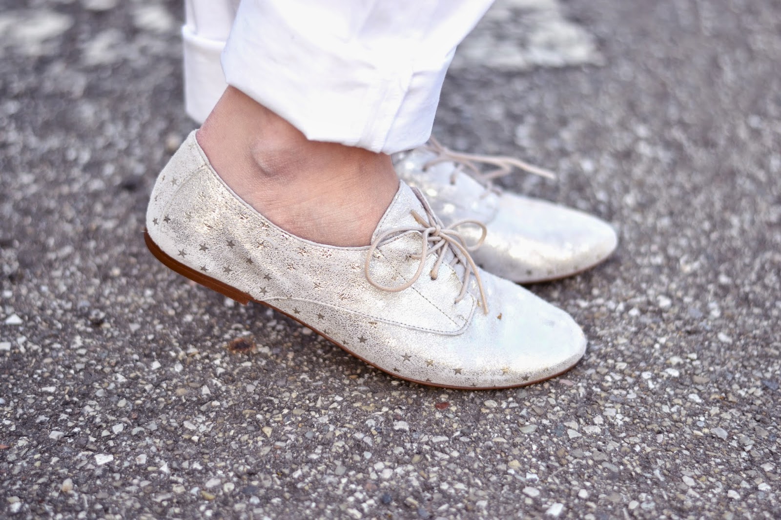 Buon venerdi! Finalmente ci siamo, stiamo entrando nuovamente nel week end. A dire la verità questa settimana è volata, tra lavoro e un salto veloce ad alcuni press day a Milano. In questo periodo sento sempre la necessità di stare comoda. Niente tacchi, solo sneakers o stringate, la mia nuova passione. Queste in pelle argentata con le stelline di SKA secondo me sono formidabili, non trovate? Vi auguro buon week end, un bacio!  Happy Friday! Here we are, we are entering it again over the weekend. To be honest, this week has flown between work and a quick jump to some press day in Milan. In this period I always feel the need to be comfortable. No heels, just sneakers or flats, my new passion. These in silver leather with stars by SKA are really lovely, isn’t it? I wish you a good weekend, a kiss!