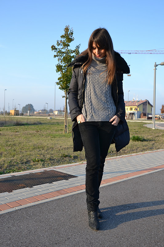 L’unico appunto sono gli stivaletti, che, per gusto personale, non amo molto: troppi glitter (anche se devo essere sincera tu sei riuscita a smorzarli proprio bene, in questo contesto non sono pesanti per nulla).