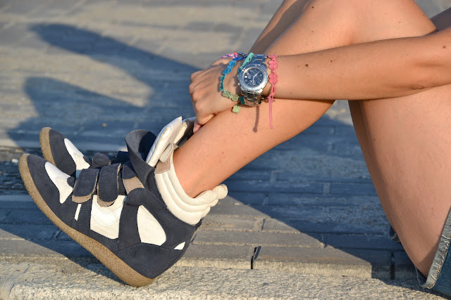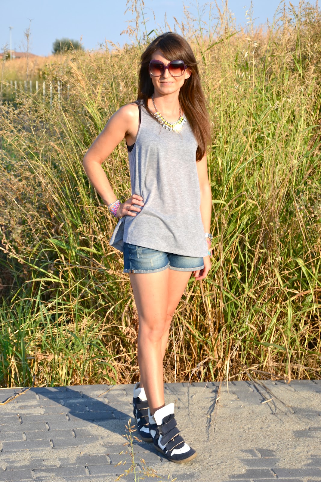 Un caldo da non resistere… ma noi TENIAMO BOTTA!!! Oggi cheap look versione sportiva: canotta  9,90 euro e collana 12,90 euro, H&M. Gli shorts sono di Zara dell’anno scorso ma li hanno rifatti identici anche quest’anno. Le mie amate sneakers sono Lemarè, le avete già viste QUI. Che ne dite? Spero che vi piaccia!