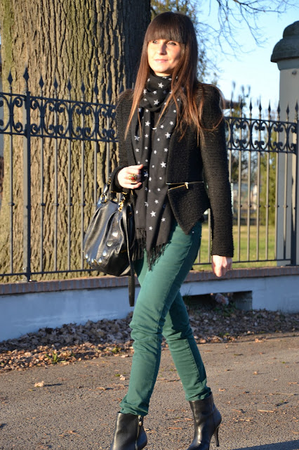 | jacket and boots: Zara; pants: no brand; scarf: Rifle; bag: Miu Miu; belt: Hermès; necklace: DoDo |