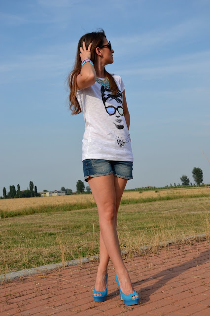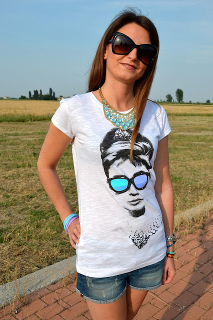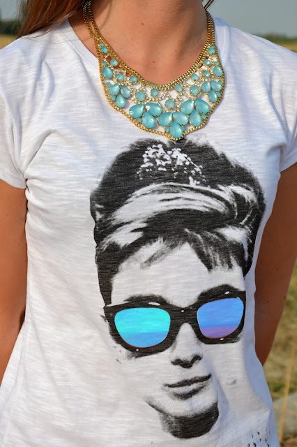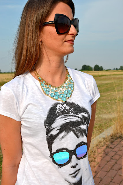 Audrey è la mia icona di stile preferita da sempre, non so quante volte ho visto i suoi film, e quante volte ho desiderato essere chic come lei… Immaginate la mia faccia soddisfatta quando ho ricevuto questa maglietta! Non poteva esserci stampa più bella per me! Tee Trend è un brand romano già noto per le sue magliette con stampe spiritose e carinissime a prezzi cheap. Vorrei sottolineare un aspetto che per me è fondamentale: la qualità del cotone: sottilissimo e fresco, perfetto per l’estate. Ho sentito davvero una sensazione di comfort indossando questa maglietta, anche in giornate caldissime come queste.  Audrey is my favorite style icon, I don’t know how many times I’ve seen his movies, and how many times I wanted to be so chic Imagine my happyness when I got this shirt! There could be printing more beautiful to me! Tee Trend is a Roman brand already known for its T-shirts with funny and cute prints at cheap prices. I would like to emphasize one aspect that is fundamental for me: the quality of cotton: thin and crisp, perfect for summer. I really felt a sense of comfort wearing this T-shirt, even in hot days like these.  (Ringrazio i gentilissimi ragazzi dello staff di Tee Trend per avermi inviato questa bellissima maglietta e per non aver richiesto nessuna forma di pubblicità in cambio. Tutto ciò che scrivo, come sempre del resto, è il mio spontaneo e reale pensiero e scrivere articoli, indossare vestiti e accessori, perlare dei brand emergenti e non, è per me sempre un piacere, anche perchè prendo in considerazione solo ciò che mi piace. Questa volta lo è ancora di più.)