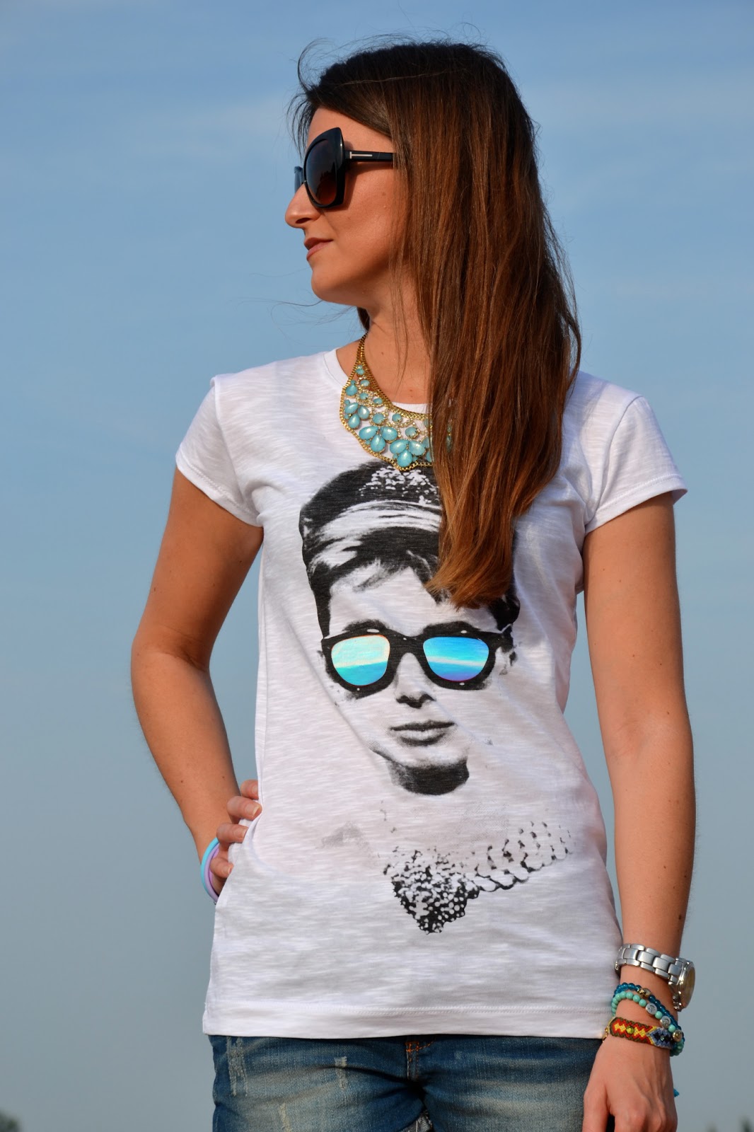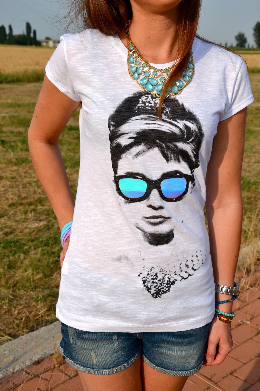 Audrey è la mia icona di stile preferita da sempre, non so quante volte ho visto i suoi film, e quante volte ho desiderato essere chic come lei… Immaginate la mia faccia soddisfatta quando ho ricevuto questa maglietta! Non poteva esserci stampa più bella per me! Tee Trend è un brand romano già noto per le sue magliette con stampe spiritose e carinissime a prezzi cheap. Vorrei sottolineare un aspetto che per me è fondamentale: la qualità del cotone: sottilissimo e fresco, perfetto per l’estate. Ho sentito davvero una sensazione di comfort indossando questa maglietta, anche in giornate caldissime come queste.  Audrey is my favorite style icon, I don’t know how many times I’ve seen his movies, and how many times I wanted to be so chic Imagine my happyness when I got this shirt! There could be printing more beautiful to me! Tee Trend is a Roman brand already known for its T-shirts with funny and cute prints at cheap prices. I would like to emphasize one aspect that is fundamental for me: the quality of cotton: thin and crisp, perfect for summer. I really felt a sense of comfort wearing this T-shirt, even in hot days like these.  (Ringrazio i gentilissimi ragazzi dello staff di Tee Trend per avermi inviato questa bellissima maglietta e per non aver richiesto nessuna forma di pubblicità in cambio. Tutto ciò che scrivo, come sempre del resto, è il mio spontaneo e reale pensiero e scrivere articoli, indossare vestiti e accessori, perlare dei brand emergenti e non, è per me sempre un piacere, anche perchè prendo in considerazione solo ciò che mi piace. Questa volta lo è ancora di più.)