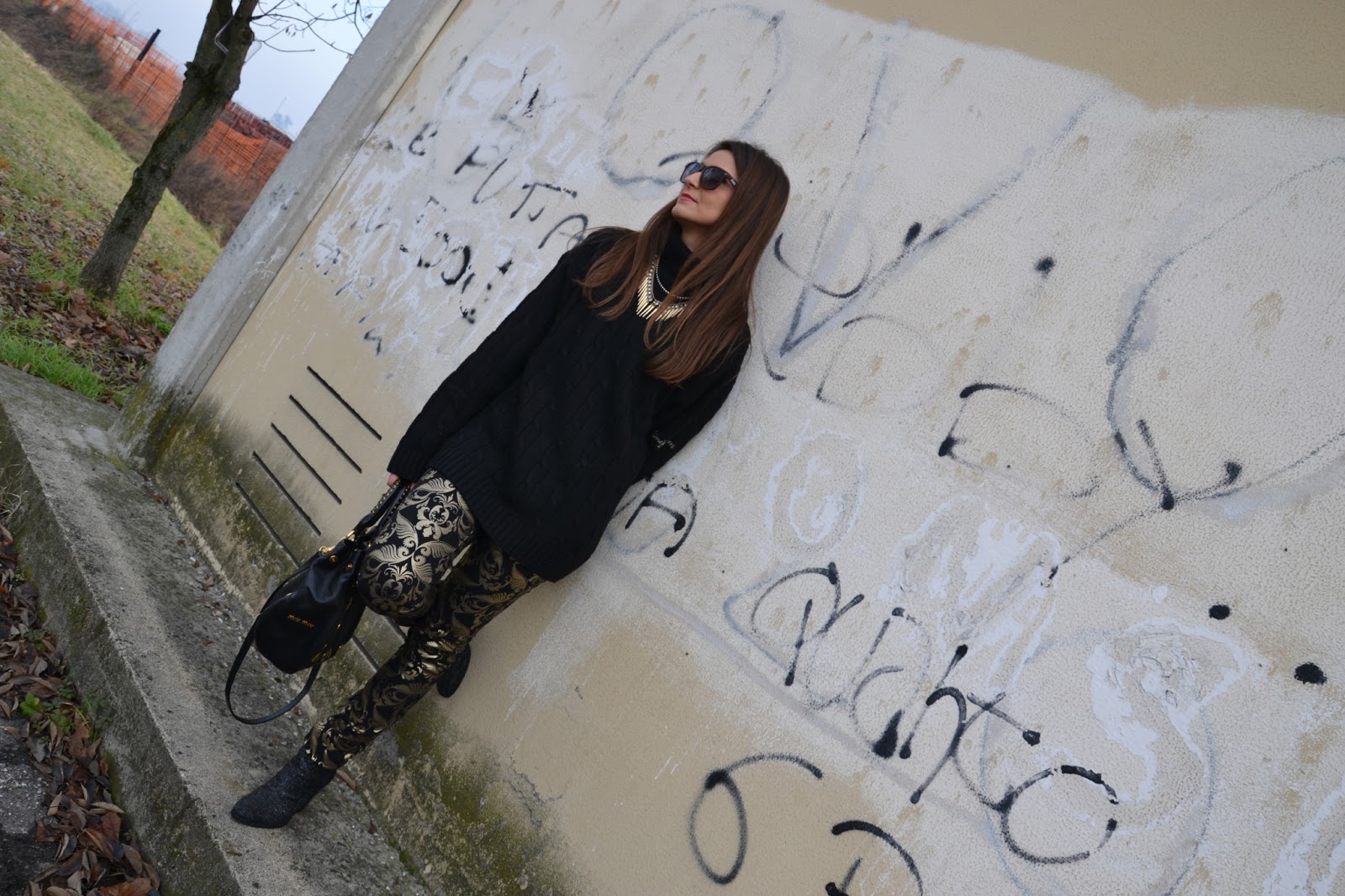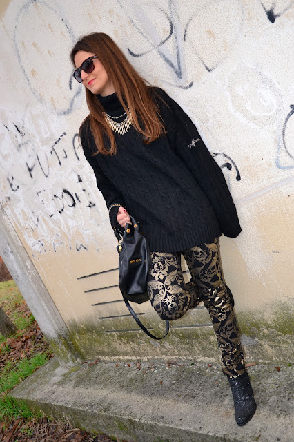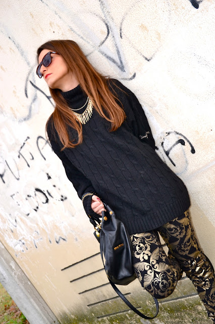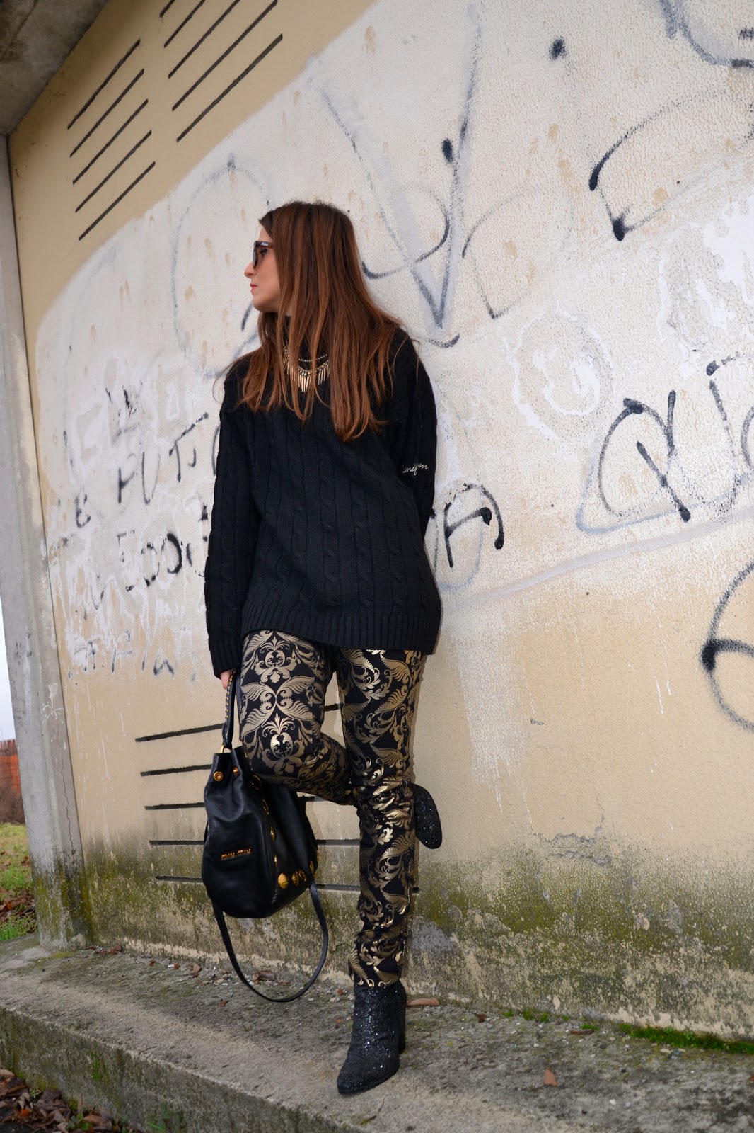 Un vecchio maglione che risale ai tempi del liceo e che non ho mai avuto il coraggio di buttare via… riesumato dagli abissi più nascosti del mio armadio e combinato con l’oro dei pantaloni barocchi di Asos. Dai, in fin dei conti i suoi anni li porta ancora bene, che dite?An old sweaterthat goes back tohigh school andI neverhad the courage tothrow away…resurrectedfrom the depthsof my closetandhiddencombinedwith the goldof the baroque pantsby Asos.Come on,after allhis yearstakes themwell enough? Let me know what you think…