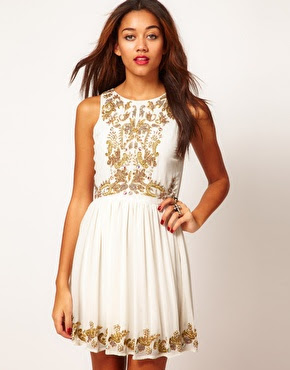 Fu amore a prima vista alcune sere fa, quando ho avuto la malaugurata idea di cercarmi un vestito da sera ma portabile anche di giorno in determinati contesti festosi, con un mini blazer sopra. Non troppo aggressivo, non eccessivamente minigonnato ma decorato, un po’ barocco come piace a me. Sono andata subito sul sito Asos, amico fedele di noi fashioniste, sicura di trovarne uno che corrispondesse ai miei gusti. Ebbene, non ne ho trovato uno, ma 7!!! E ora che si fa? Bè il primo sicuramente deve essere mio, è troppo bello! Guardate com’è “stunning” indossato da Bee, la guru di tutte noi…Ok, ok, addosso a me non sarà la stessa cosa, però l’idea mi piace, mi piace assai! E degli altri modelli che mi dite? Ne porterò a casa solo uno? Resisterò? Sono aperte le scommesse! Buona domenica, un bacione!  (ps il vestito sopra: Asos, prezzo: 131,96 euro).