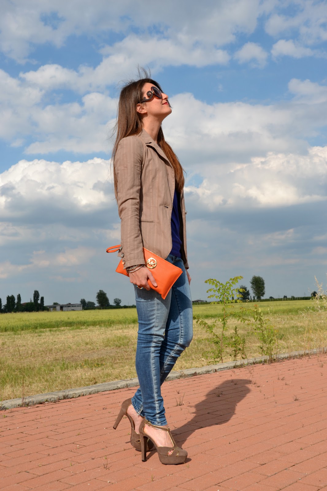 | Jeans: Pepe Jeans London; shoes: Chiara Ferragni; tee: Miu Miu; clutch: Michael Kors; blazer: Liu-jo (old). |