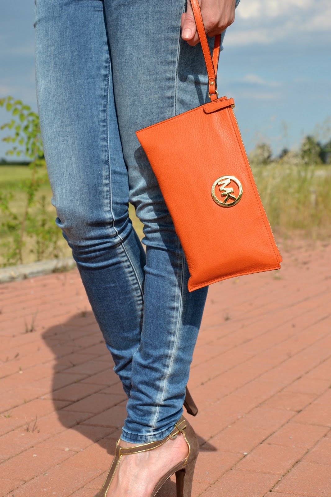 Ti stanno perfettamente questi jeans e la pochette di Kors è magnifica!!