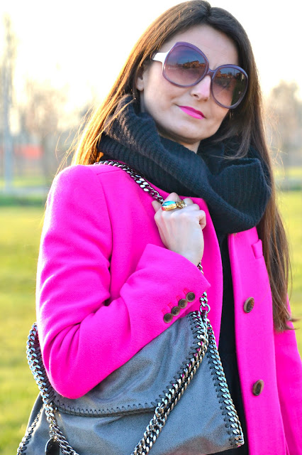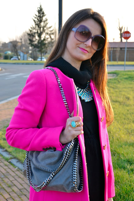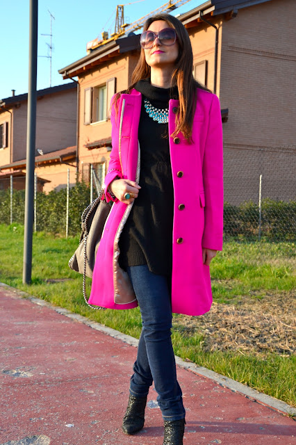 alcuni giorni dopo l’arrivo di questo favoloso cappottino super pink di JCrew che mi piace da impazzire. E’ tutta colpa della mia amica Francesca Romana Capizzi (Don’t call me fashion blogger), che mi ha messo in testa l’idea, proprio quando ero alla ricerca di un cappottino di un colore vivace! Ero indecisa tra questo, un cappottino di Milly giallo e uno di Acne verde acido, ma alla fine il pink vince sempre! Io ho scelto un modello leggermente più sfiancato e un po’ più scuro di quello di Francesca. Ho pensato poi, già che ero in tema di colore, di aggiungere la maxi collana di Chicnova, è tanto bella sul maglione nero! Che ne dite? Anche un’altra nostra amica comune, Alessia Milanese (The chili cool), ha ceduto al fascino del pink. Vi piacciono i nostri cappottini? Bacioni!  We Took These photos at least three weeks ago, a few days after the arrival of this super fabulous pink coat by JCrew, I love it! It ‘s All Because of my friend Francesca Romana Capizzi (Don’t call me fashion blogger), who put me in the head idea, just when i was looking for a coat in a bright color! I was torn between this, a coat of yellow by Milly and one by Acne in acid green, but in the end the pink always wins! I chose a model more slightly and a bit darker Than the one of Francesca. I also add the maxi necklace by Chicnova, is as beautiful on the black sweater! What do you think? Another our mutual friend,  Alessia Milanese (The chili cool), has fallen under the spell of pink. Do you like our coats? Kisses!