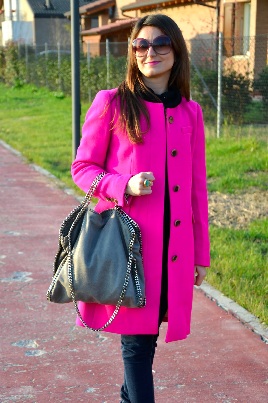 alcuni giorni dopo l’arrivo di questo favoloso cappottino super pink di JCrew che mi piace da impazzire. E’ tutta colpa della mia amica Francesca Romana Capizzi (Don’t call me fashion blogger), che mi ha messo in testa l’idea, proprio quando ero alla ricerca di un cappottino di un colore vivace! Ero indecisa tra questo, un cappottino di Milly giallo e uno di Acne verde acido, ma alla fine il pink vince sempre! Io ho scelto un modello leggermente più sfiancato e un po’ più scuro di quello di Francesca. Ho pensato poi, già che ero in tema di colore, di aggiungere la maxi collana di Chicnova, è tanto bella sul maglione nero! Che ne dite? Anche un’altra nostra amica comune, Alessia Milanese (The chili cool), ha ceduto al fascino del pink. Vi piacciono i nostri cappottini? Bacioni!  We Took These photos at least three weeks ago, a few days after the arrival of this super fabulous pink coat by JCrew, I love it! It ‘s All Because of my friend Francesca Romana Capizzi (Don’t call me fashion blogger), who put me in the head idea, just when i was looking for a coat in a bright color! I was torn between this, a coat of yellow by Milly and one by Acne in acid green, but in the end the pink always wins! I chose a model more slightly and a bit darker Than the one of Francesca. I also add the maxi necklace by Chicnova, is as beautiful on the black sweater! What do you think? Another our mutual friend,  Alessia Milanese (The chili cool), has fallen under the spell of pink. Do you like our coats? Kisses!