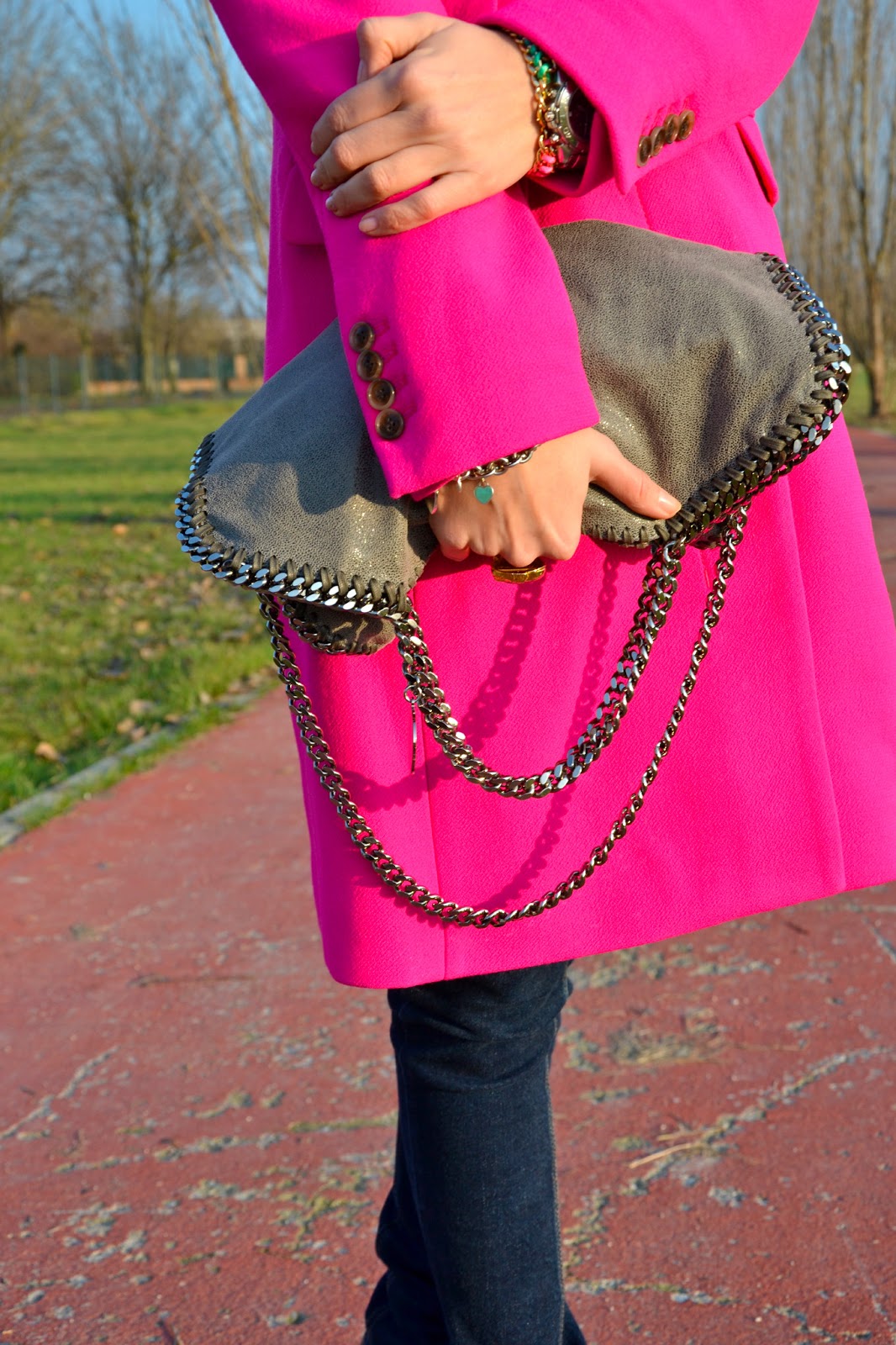 alcuni giorni dopo l’arrivo di questo favoloso cappottino super pink di JCrew che mi piace da impazzire. E’ tutta colpa della mia amica Francesca Romana Capizzi (Don’t call me fashion blogger), che mi ha messo in testa l’idea, proprio quando ero alla ricerca di un cappottino di un colore vivace! Ero indecisa tra questo, un cappottino di Milly giallo e uno di Acne verde acido, ma alla fine il pink vince sempre! Io ho scelto un modello leggermente più sfiancato e un po’ più scuro di quello di Francesca. Ho pensato poi, già che ero in tema di colore, di aggiungere la maxi collana di Chicnova, è tanto bella sul maglione nero! Che ne dite? Anche un’altra nostra amica comune, Alessia Milanese (The chili cool), ha ceduto al fascino del pink. Vi piacciono i nostri cappottini? Bacioni!  We Took These photos at least three weeks ago, a few days after the arrival of this super fabulous pink coat by JCrew, I love it! It ‘s All Because of my friend Francesca Romana Capizzi (Don’t call me fashion blogger), who put me in the head idea, just when i was looking for a coat in a bright color! I was torn between this, a coat of yellow by Milly and one by Acne in acid green, but in the end the pink always wins! I chose a model more slightly and a bit darker Than the one of Francesca. I also add the maxi necklace by Chicnova, is as beautiful on the black sweater! What do you think? Another our mutual friend,  Alessia Milanese (The chili cool), has fallen under the spell of pink. Do you like our coats? Kisses!