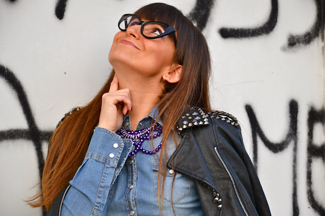 Jacket: Shampalove; boots: Jeffrey Campbell; skirt and necklace: HM (old); bag: Phillip Lim; glasses: Tom Ford; shirt: Fairly (old).