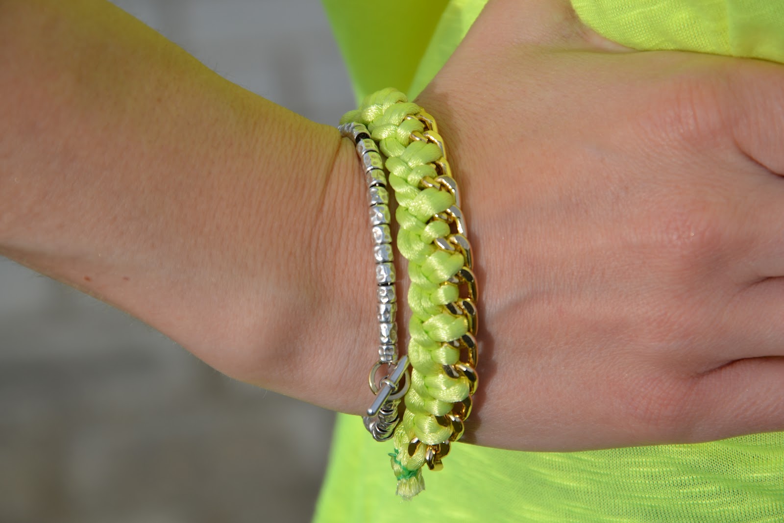 Bellissima la tee…e bellissimo il bracciale. Tutto fluo!
