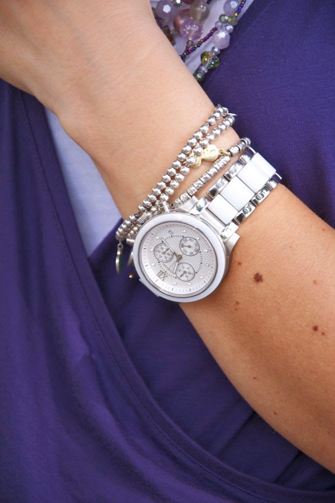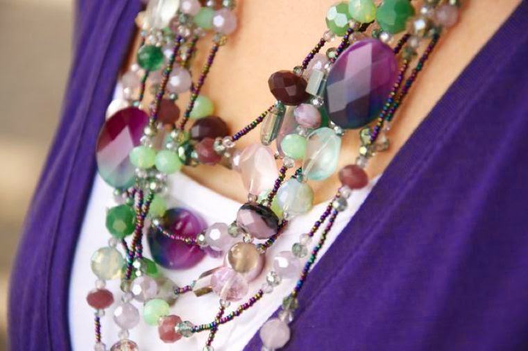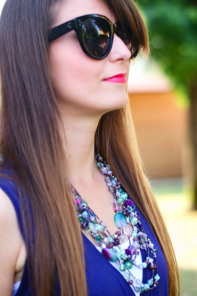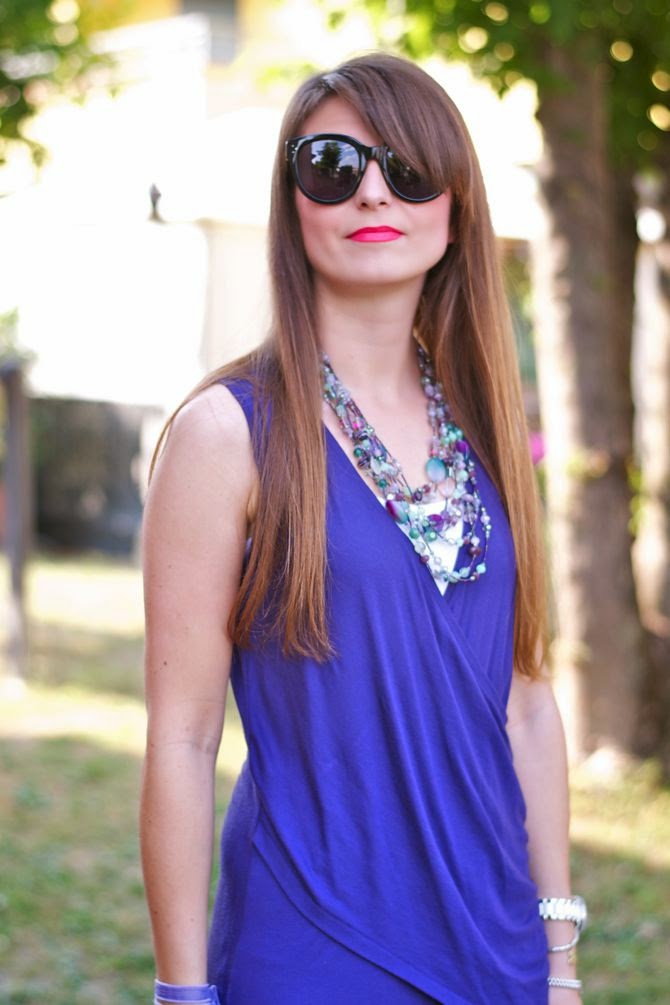 Il viola è uno dei miei colori preferiti, in tutte le sue sfumature e questa non è una novità. Ma quando si sposa con i toni del verde acqua è favoloso, come questa splendida collana di Ottaviani: un mix di perle che mi ricorda i colori della tormalina policroma, minerale prezioso e bellissimo molto apprezzato da gemmologi  e collezionisti. Per quanto riguarda le foto, nonostante io le ami leggermente sovraesposte, alcune lo sono troppo, perchè da alcuni giorni a questa parte la mia macchina fotografica ha alcuni problemi sia con il sensore che rileva la luce, sia con la messa a fuoco e non capisco perchè. Vi è mai capitato?  Parliamo ora di make-up: alcune di voi hanno apprezzato ultimamente i colori dei miei rossetti e io mi sono sempre dimenticata di specificare marca e nuance, quindi da oggi in poi cercherò di ricordarmi di scrivere sempre i tutti i prodotti make up che utilizzo. Un mega kiss!  Purple is one of my favorite colors, do you know it? Right! But when it goes well with shades of green water is fabulous, a perfect combo, as this amazing necklace by Ottaviani: a mix of beads that reminds me of the colors of polychrome tourmaline, valuable and beautiful mineral highly prized by collectors and gemologists. Talking about the photos, even I love  slightly overexposed, some of these are too much, because now my camera has some issues with both the sensor that detects the light, and with the focus and I don’t understand why. Have you ever had any problems like this? Let’s talk about my make-up: Some of you have enjoyed the color of my lipsticks and I always forgot to specify brand and shades, so from now on I will try to remember to write all the make-up products that I use. Have a great day!
