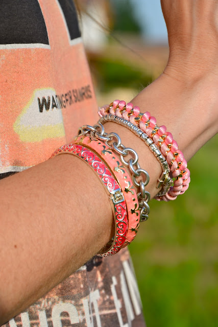Your t-shirt and the bracelets are amazing! Very nice look! =)