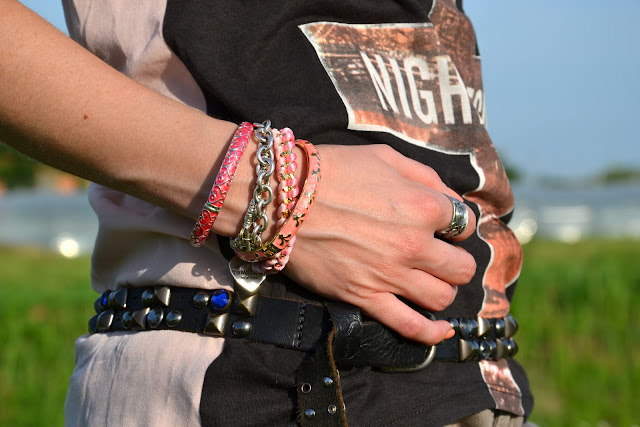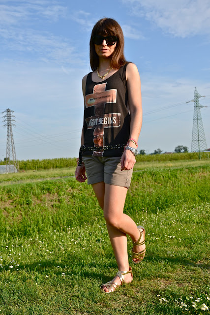 | Vest: Bershka; shorts: Liu-jo (old); belt: NoLita; bracelets: Sal Y Limon, Tiffany, Dodo, made by me; sunnies: Cèline. |