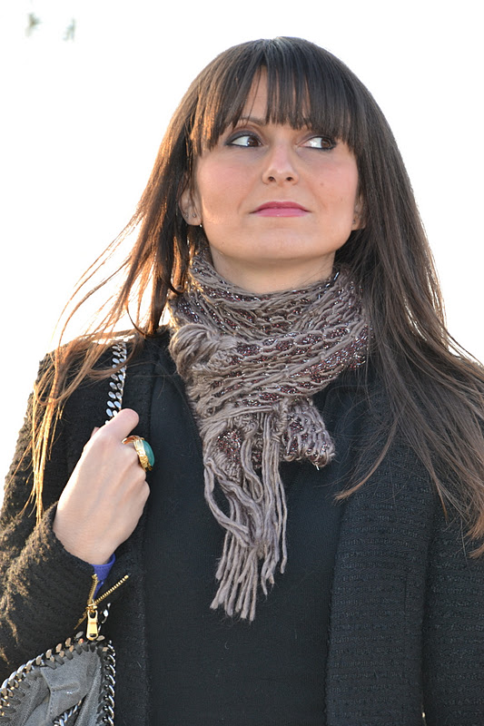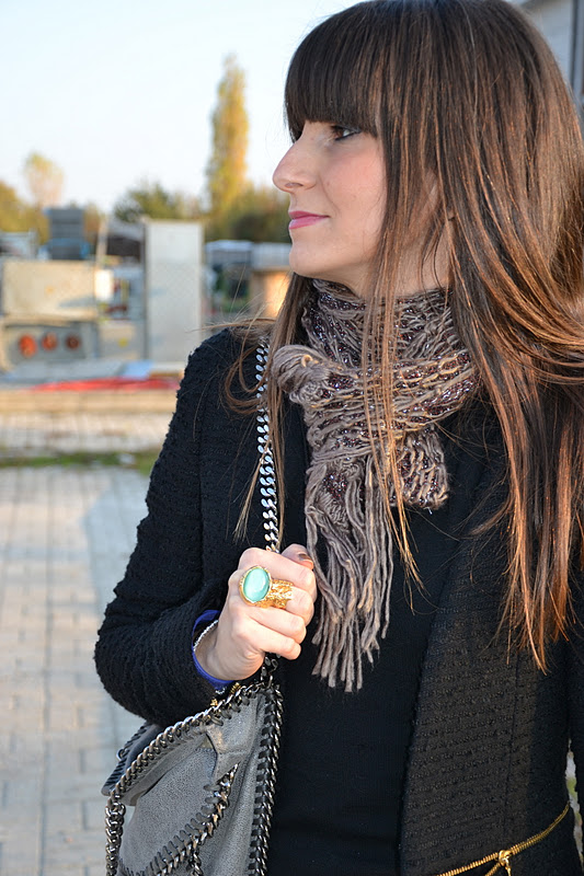 | Jacket: Zara (new collection); belt:Moschino; ankle boots: Miu Miu; bag: Stella Mc Cartney; ring: YSL |