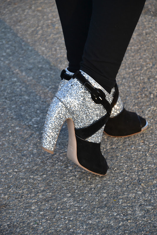 Wearing Miu Miu glitter shoes (and new haircut!)