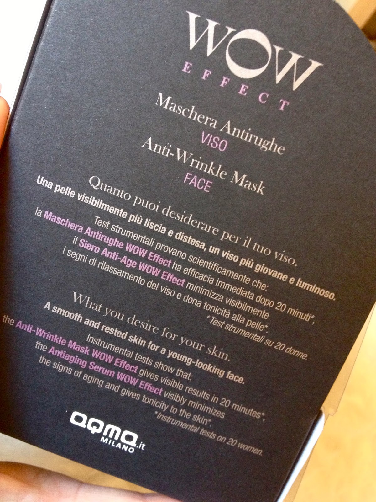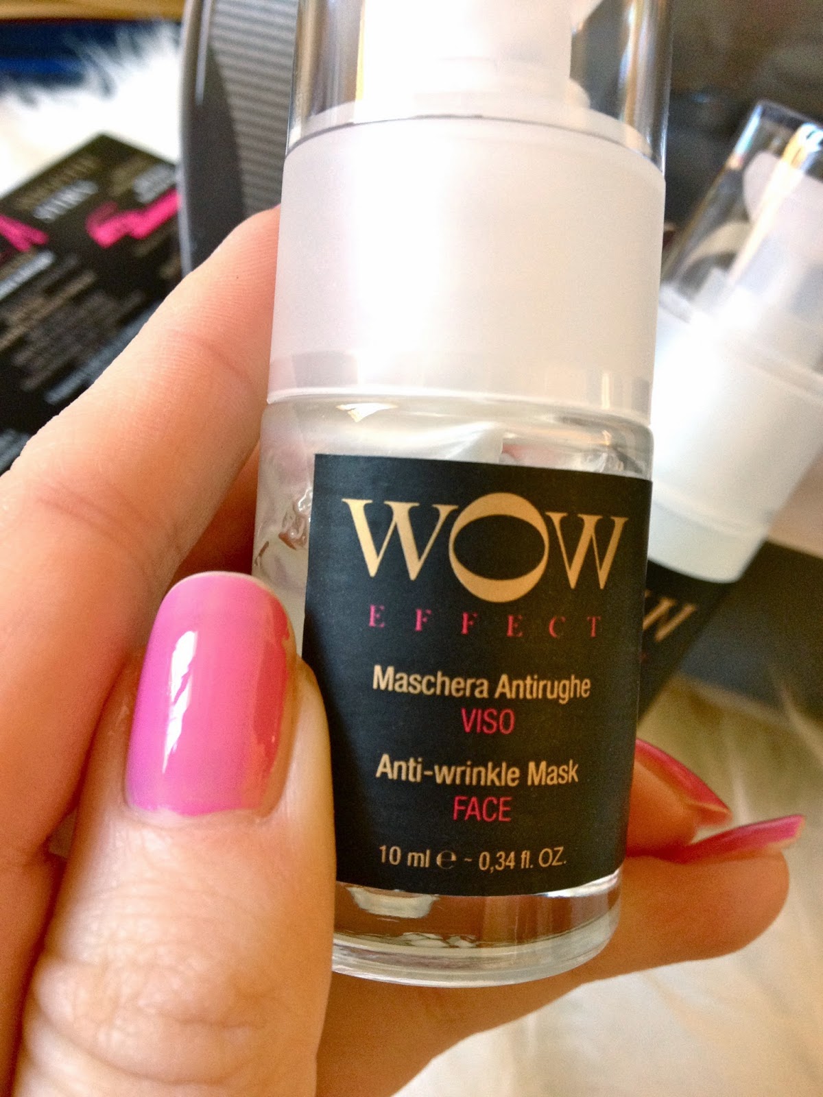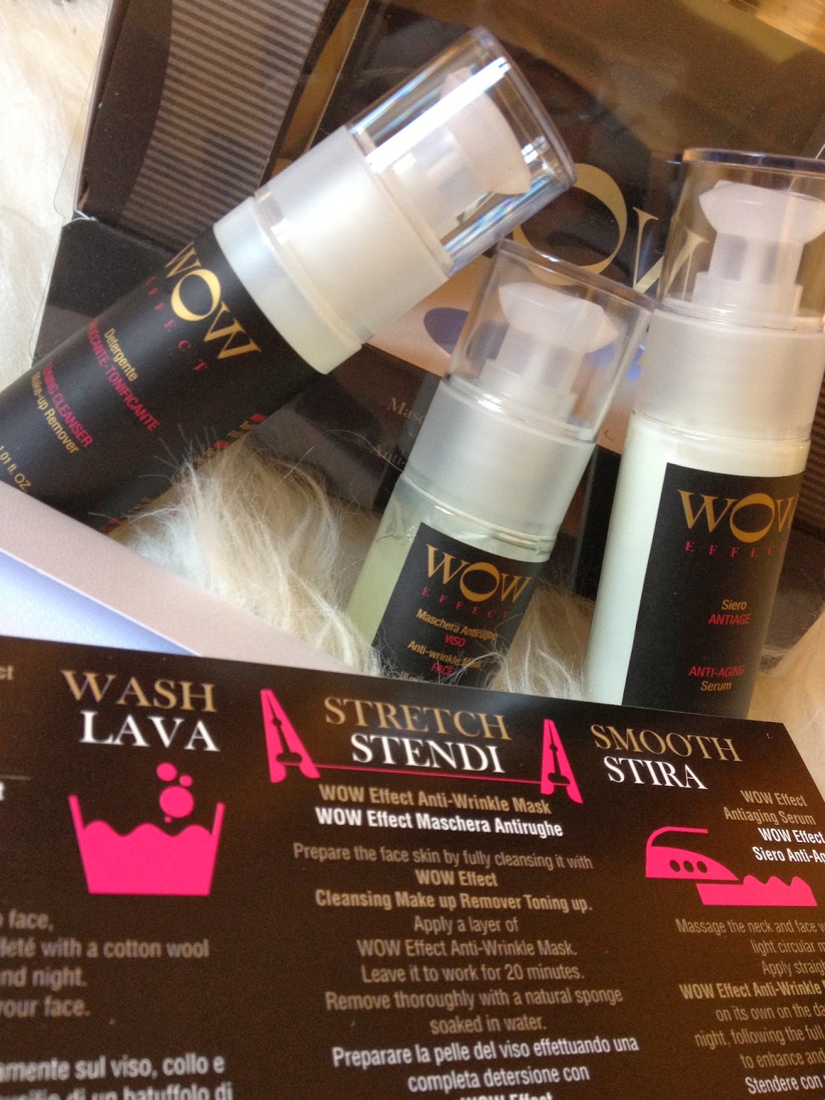 Hello and good Saturday everyone! Today we speak of a set of products for the face that I had the opportunity to try out and I’m still use with satisfaction : WOW Effect. The beautiful box you see above contains everything you need for face care, in compliance with even the most sensitive skin, like mine. I tell you now that the packaging is so cute that I almost felt sorry open it. On the left side there is a natural sponge, on the right side manual that teaches us how to properly use the products, and behind, a pearl-colored envelope that contains a brief recap of the philosophy WOW Effect : WASH, STRETCH, SMOOTH. No, not laundry, your skin ! In fact, with the three-step skin is perfectly clean , relaxed and moisturized , thanks to the three great products contained in the box : 1 ) toning cleanser makeup remover (which does not dry the skin ), 2) Anti-Wrinkle Mask ( love it ) 3) Anti-Aging Serum (I love him too ). These products should be used together, because they work in synergy with each other. The mask should be used once a week, while serum and cleanser every day. As in all anti-aging treatments , the benefits are perceived over time, with daily use and correct use of the products. After having used them a few days I can say that I am really happy and I am enjoying some more brightness in my skin, and the small fine lines near the eyes in the morning when I wake up now seem less obvious. I highly recommend you try them! PS : Have you read my interview for the blog WOW Effect ? Read it HERE if you like , I mean , among other things , of what I think of some aspects of blogging today …