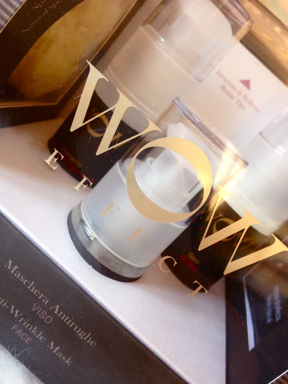 Hello and good Saturday everyone! Today we speak of a set of products for the face that I had the opportunity to try out and I’m still use with satisfaction : WOW Effect. The beautiful box you see above contains everything you need for face care, in compliance with even the most sensitive skin, like mine. I tell you now that the packaging is so cute that I almost felt sorry open it. On the left side there is a natural sponge, on the right side manual that teaches us how to properly use the products, and behind, a pearl-colored envelope that contains a brief recap of the philosophy WOW Effect : WASH, STRETCH, SMOOTH. No, not laundry, your skin ! In fact, with the three-step skin is perfectly clean , relaxed and moisturized , thanks to the three great products contained in the box : 1 ) toning cleanser makeup remover (which does not dry the skin ), 2) Anti-Wrinkle Mask ( love it ) 3) Anti-Aging Serum (I love him too ). These products should be used together, because they work in synergy with each other. The mask should be used once a week, while serum and cleanser every day. As in all anti-aging treatments , the benefits are perceived over time, with daily use and correct use of the products. After having used them a few days I can say that I am really happy and I am enjoying some more brightness in my skin, and the small fine lines near the eyes in the morning when I wake up now seem less obvious. I highly recommend you try them! PS : Have you read my interview for the blog WOW Effect ? Read it HERE if you like , I mean , among other things , of what I think of some aspects of blogging today …