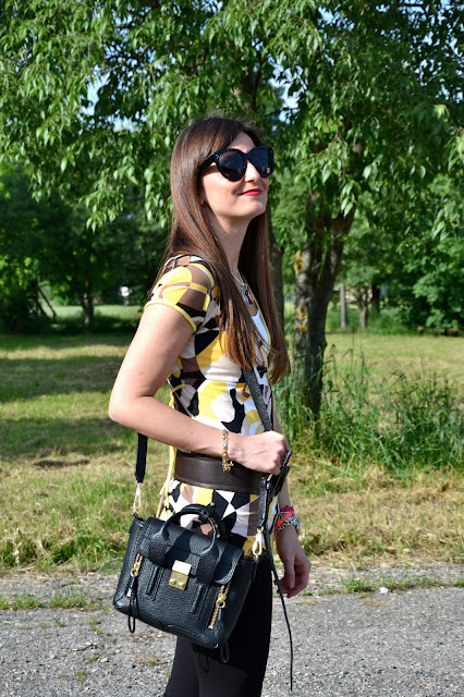 Sandals: thanks to Cinti; pants: Stradivarius; necklace and ring: Nena’s bijoux; tee: no brand; belt: vintage from my mum’s closet; bag: Phillip Lim; sunglasses: Cèline Audrey; lipgloss: Glossip