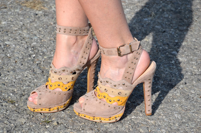Quando abbiamo scattato queste foto invece era una giornata caldissima e finalmente ho potuto indossare per la prima volta i miei bellissimi sandali con borchiette Cinti, che vi avevo già mostrato QUI. Abbinati al nero mi piacciono molto, ora però sto pensando di abbinarli a qualcosa di bianco per un prossimo look. Questi sandali sono molto più versatili di quanto credessi e anche se i tacchi sono molto alti il plateau li rende davvero confortevoli. Che ne dite? Vi piace l’accostamento? Avete suggerimenti per abbinamenti diversi? Un bacione!